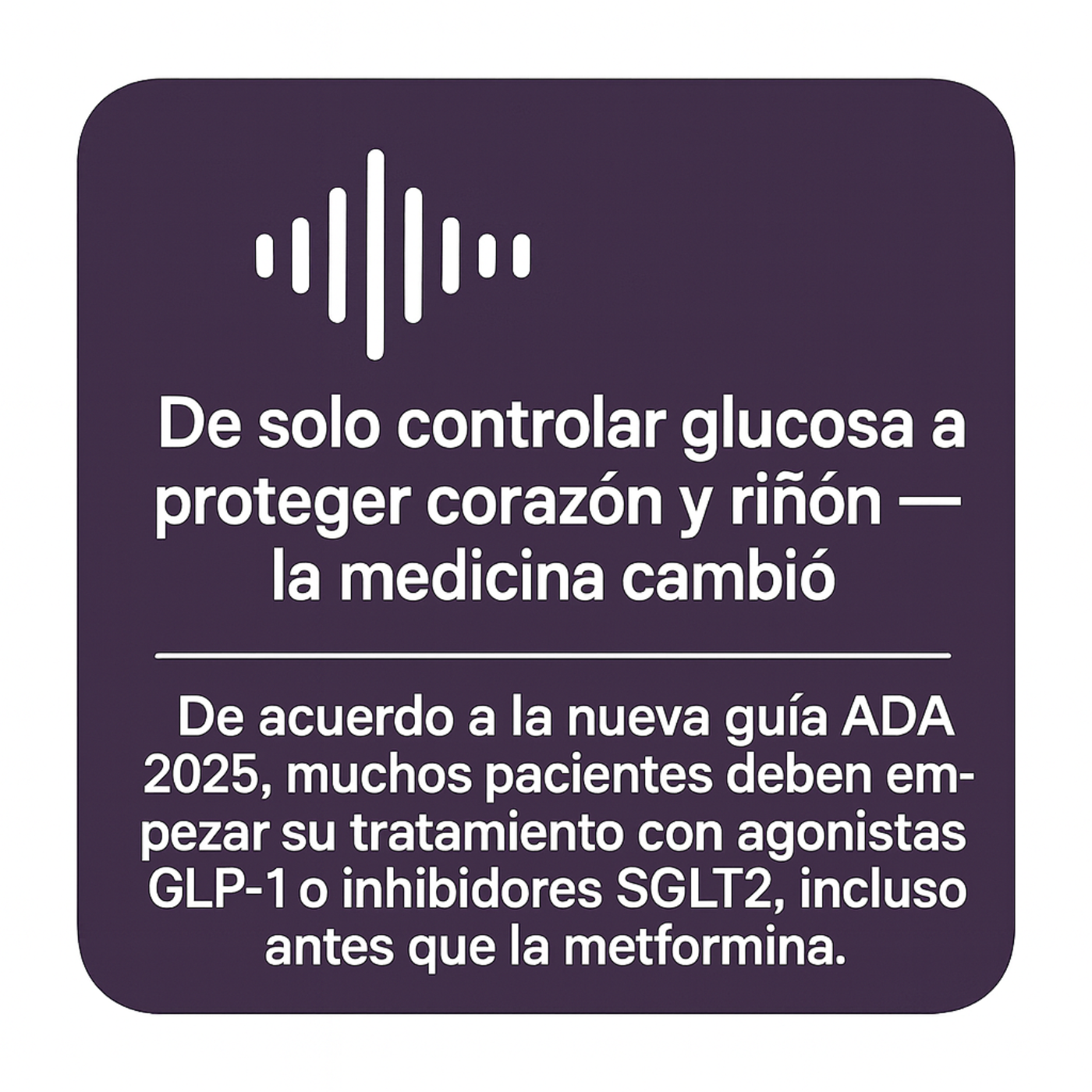 De acuerdo a la nueva guĆa ADA 2025, muchos pacientes deben empezar su tratamiento con agonistas GLP-1 o inhibidores SGLT2, incluso antes que la metformina.